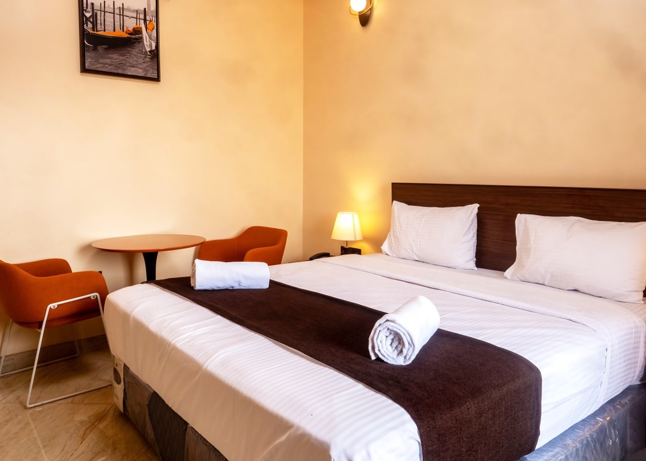 Awaken to sweeping panoramic views of Juba in our elegant Standard Room. Thoughtfully designed for relaxation and productivity, these suites feature refined interiors, double balconies, and a generous living area ideal for both work and leisure. A convenient mini kitchen enhances your stay, while the executive bathtub offers a tranquil, spa-inspired escape. An ideal choice for guests who wish to experience the vibrant pulse of the city while enjoying elevated comfort and refined luxury.